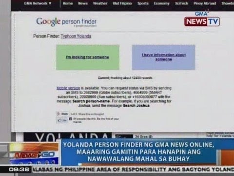 During Typhoon Yolanda, the People Finder is a vital tool for people across the globe to track the situation of their relatives. This proved to be successful and is now adapted by more organizations to help track relatives during calamity. On the website, users can search for persons they are looking for and at the same time, people in the affected areas, once they have access, can provide information about their whereabouts or current situations of other people. The said page is also available for mobile phones. However, Google reminds people that "all data entered (on the website) is available to the public and usable by anyone," adding that "Google does not review or verify the accuracy of the data." So, it's not 100 percent proof. Nonetheless, it's another alternative option that can easily be accessed online.Typhoon Haiyan, known as Typhoon Yolanda in the Philippines, was one of the strongest tropical cyclones ever recorded, which devastated portions of Southeast Asia, particularly the Philippines, on November 8, 2013It is the deadliest Philippine typhoon on record, killing at least 6,300 people in that country alone. imagesHaiyan is also the strongest storm recorded at landfall. In January 2014, bodies were still being found. The thirtieth named storm of the 2013 Pacific typhoon season, Haiyan originated from an area of low pressure several hundred kilometers east-southeast of Pohnpeiin the Federated States of Micronesia on November 2, 2013. Tracking generally westward, environmental conditions favored tropical cyclogenesis and the system developed into a tropical depression the following day.download-1After becoming a tropical storm and attaining the name Haiyan at UTC on November 4
